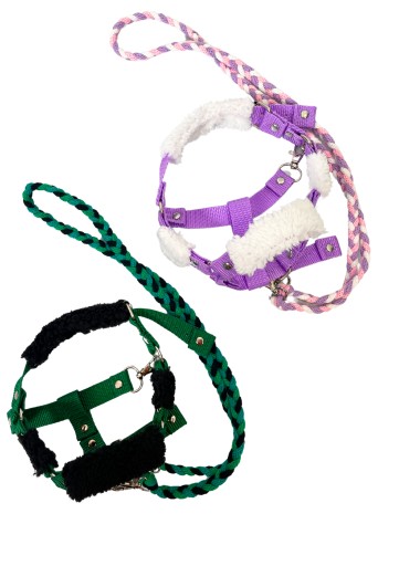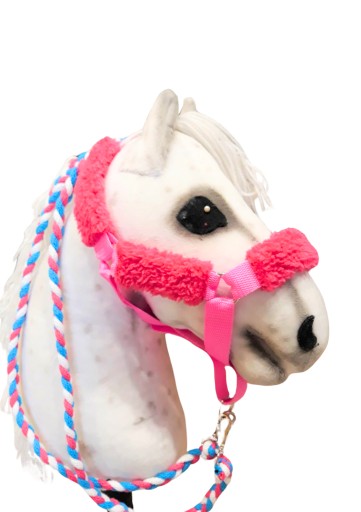 Oferujemy Państwu piękny REGULOWANY kantar futerkowy dla hobby horsa wraz z dobranymi kolorystycznie wodzami.