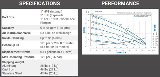 To legendarna 1-calowa pompa, która przetrwała próbę czasu jako wiodąca w swojej klasie. Pompa napędzana sprężonym powietrzem lub azotem.