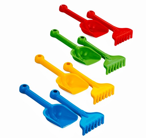 Dzieci pokochają ten śliczny, kolorowy zestaw z łopatką i grabkami. Nadaje się on do zabawy na plaży, w piaskownicy albo w ogrodzie.