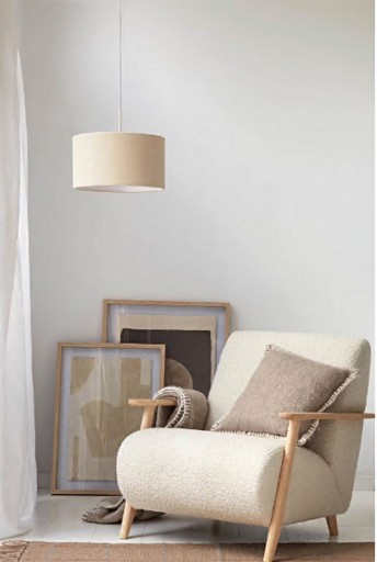 Abażur materiałowy zabezpieczony od wewnątrz białą folią PCV, co znacznie zwiększa natężenie światła w pomieszczeniu.