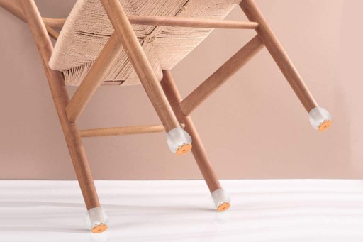 Wystarczy wcisnąć nóżki w nakładki i gotowe. Jest to rozwiązanie znacznie prostsze i pewniejsze niż klejenie lub przybijanie filcu do spodu nóżek.