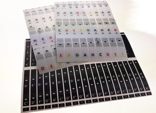 - Komplet zawiera etykiety do naklejenia na białe oraz czarne klawisze