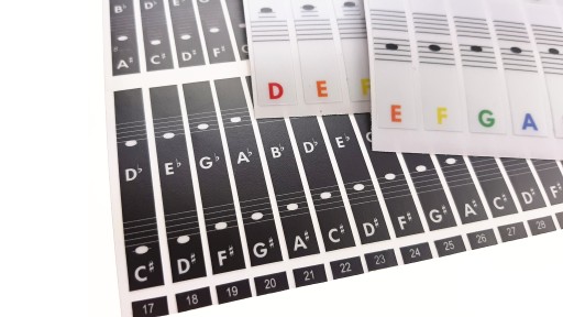 - Komplet zawiera etykiety do naklejenia na białe oraz czarne klawisze