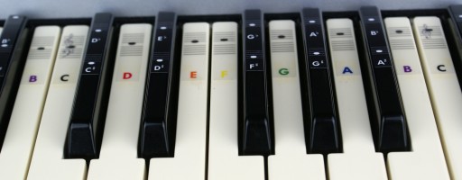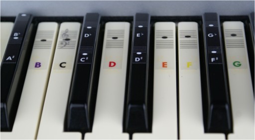 Etykiety na klawiaturę instrumentów muzycznych (pianino, keyboard) ułatwiające, przyspieszające naukę gry.