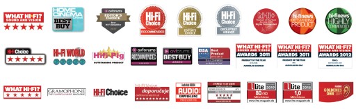 Powyżej widać nagrodowy dorobek Audloaba z ostatnich lat w ocenach testowych i recenzjach z całego świata Audio.