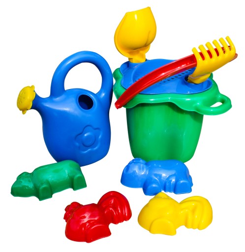 Niezbędnik do zabawy w piasku składający się z 9 elementów: