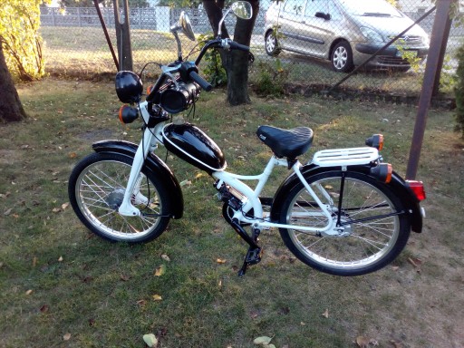Rama została kompletnie odrestaurowana, wypiaskowana i pomalowana proszkowo - trzy warstwy: podkład, kolor i lakier bezbarwny.