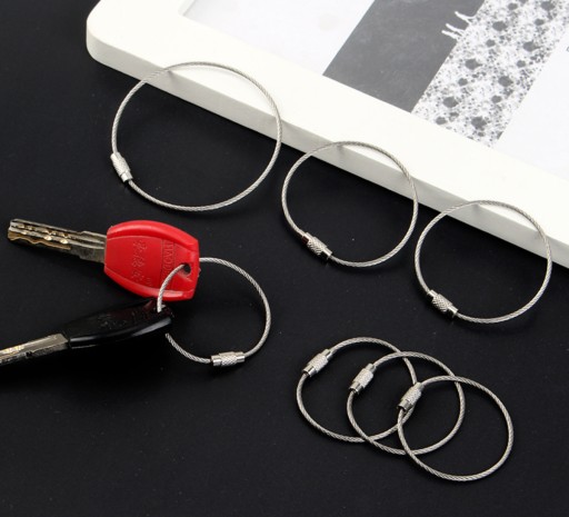 КОЛЬЦО ДЛЯ КЛЮЧЕЙ СТАЛЬНОЙ ТРОС СЕРЕБРЯНАЯ РУЧКА