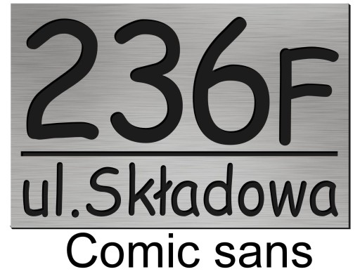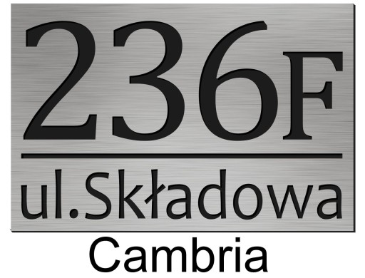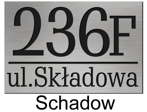 - Napisy wykonujemy w przesłanej formie, czyli jeżeli napiszą ją państwo dużymi literami np. SKŁADOWA to tak zostanie wykonana to samo dotyczy się skrótu "ul." jeśli go państwo nie napiszą to go nie będzie.