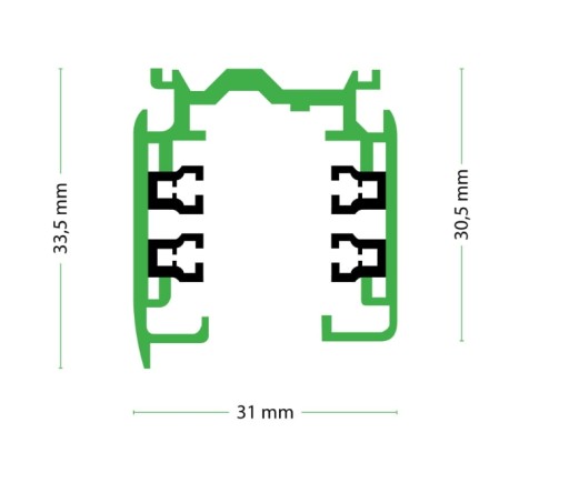 Wpływa też pozytywnie na estetykę systemu szynowego przez zredukowanie do minimum ilości wystających kabli oraz zespolenie szynoprzewodów bez pozostawiania nieestetycznych przerw. Posiada miedziane przewodniki, potrzebne do połączenia trzech niezależnych obwodów szyny trójfazowej, oraz konstrukcję z wysokogatunkowego tworzywa sztucznego w kolorze czarnym.
