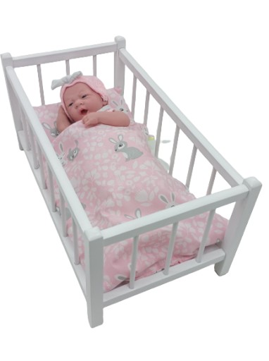 BIAŁE, DREWNIANE ŁÓŻECZKO Z KOMPLETEM POŚCIELI (3 elementy)