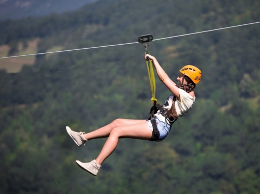 Спуск по канату на зиплайне высотой до 50 метров, профессионально!