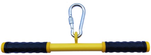 wykonany z polskiej stali wysokiej jakości. Może być stosowany przy urządzeniach do ćwiczeń, tyrolkach jako element do trzymania przy zjeździe. Uchwyt posiada gumowe rączki pomagające w stabilnym chwycie.