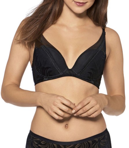 Biustonosz z wyprofilowanymi i lekko usztywnionymi miseczkami.