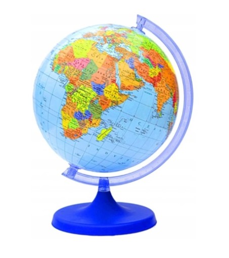 Globus 220 mm mapa polityczna, cięciwa plastikowa, stopka plastikowa.