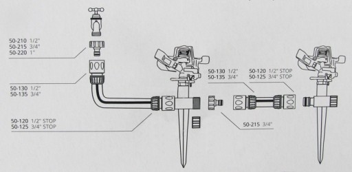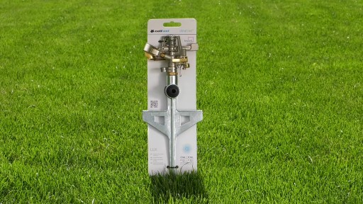 - profesjonalny metalowy zraszacz pulsacyjny na podstawie szpilki z dodatkowymi ramionami, które zapewniają maksymalną stabilność