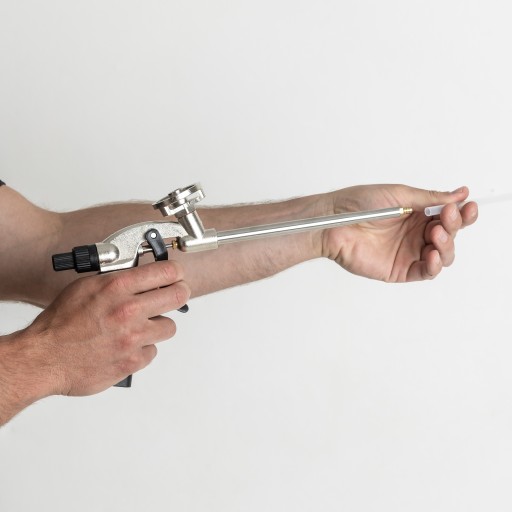 Pistolet wykorzystywany do precyzyjnej aplikacji piany montażowej, kleju do styropianu.