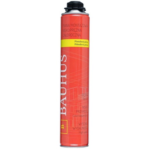 • Pianka poliuretanowa Bauhus do zastosowań montażowo-uszczelniających całorocznie (możliwość używania od -10 do +30 stopni Celsjusza).