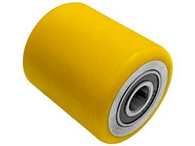 Rolka do wózków paletowych składa się z aluminiowego korpusu trwale połączonego z bieżnią poliuretanową o twardości 92°Shore’a o bardzo wysokim komforcie jazdy i niewielkim oporze toczenia. Pełna poliuretanowa opona nie niszczy posadzki. W rolce zastosowano łożysko kulkowe.