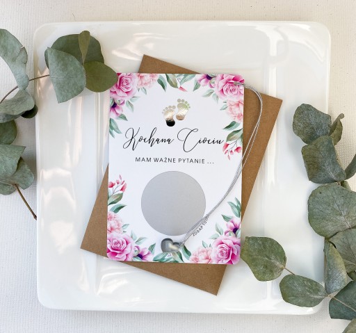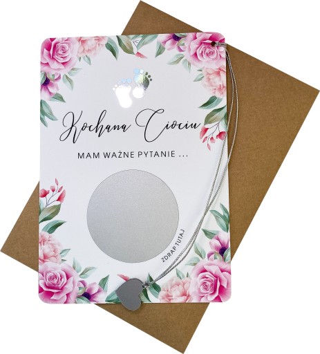 Do kartki przyczepione jest serduszko, którym można zdrapać zdrapkę.