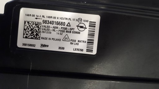 OPEL MOKKA B ПРАВАЯ ФАРА ПОЛНОСТЬЮ СВЕТОДИОДНАЯ ЛИНЗА НОВАЯ