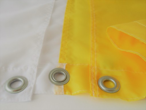 Flaga wykonana z szybkoschnącej tkaniny poliestrowej, o podwyższonej odporności na działanie promieni UV. Ocynkowane oczka umieszczone na brzegu flagi, umożliwiają przypięcie flagi do linki masztu. Średnica oczka w środku 12 mm.