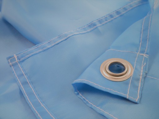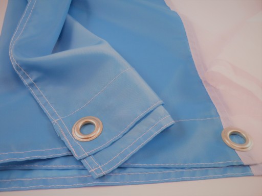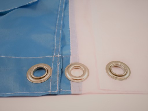 Flaga wykonana z szybkoschnącej tkaniny poliestrowej, o podwyższonej odporności na działanie promieni UV. Ocynkowane oczka umieszczone na brzegu flagi, umożliwiają przypięcie flagi do linki masztu. Średnica oczka w środku 12 mm.