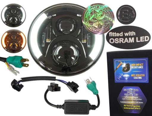 - w skład wchodzą: 1 lampa z LED-ami firmy OSRAM (z serii premium OSLON SSL), wtyczka H4, adapter H4-H13, przyrząd "canbus" potrzebny do montażu lampy LED w samochodach z zaawansowaną elektroniką, 2 dodatkowe kable do montażu DRL