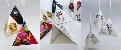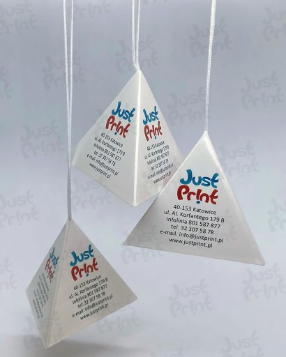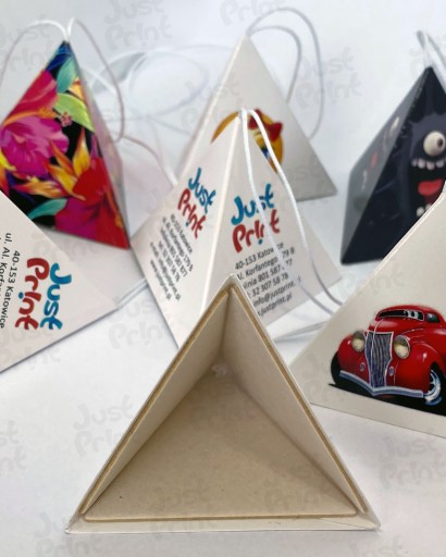 Druk piramidki wykonany jest na wysokiej jakości papierze fotograficznym błyszczącym, w pełnym kolorze.