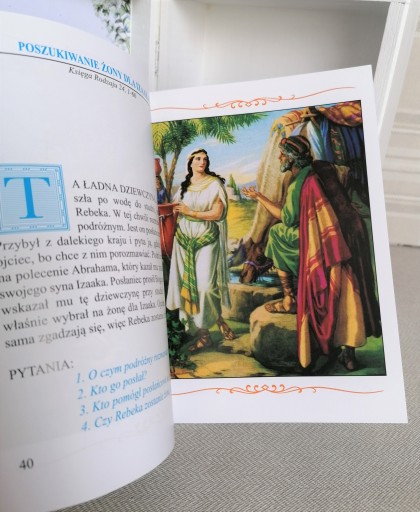 Specjalnie na ta okazję w naszej Manufakturze została zaprojektowana szkatułka, w której umieszczona została przepięknie wydana, ilustrowana biblia dla dzieci.