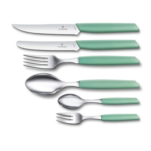 Rozszerzenie kolekcji Swiss Modern o widelce, łyżki, widelczyki i łyżeczki w trzech kolorach pozwoli wszechstronnie wykorzystać najpopularniejsze uniwersalne noże - również jako część zastawy stołowej.