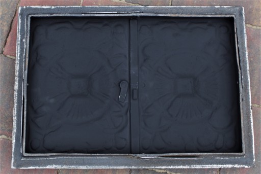 Żeliwne drzwiczki służą do zabudowy wędzarni przydomowej, pieców chlebowych, kominków itp. Z tyłu ramki są uchwyty służące do montażu.