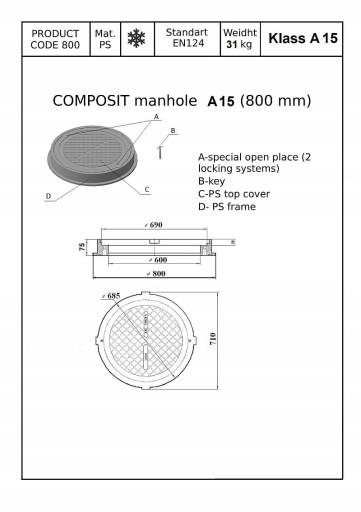 Ponadto, jako przedmiot niemetalowy, jest zupełnie nieprzydatny okolicznym złomiarzom przez co znacznie ograniczamy ryzyko "zniknięcia" klapy włazu.