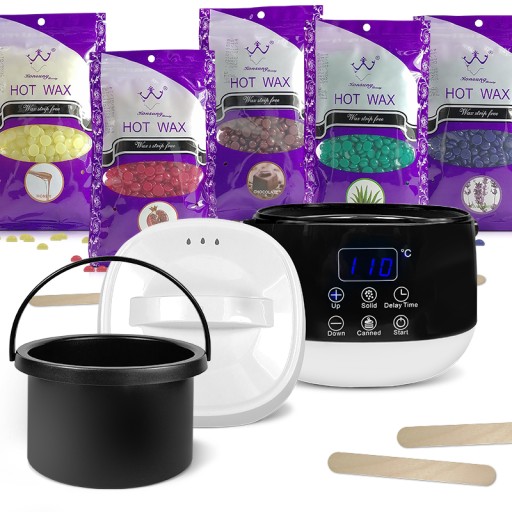 НАБОР ДЛЯ ДЕПИЛЯЦИИ НАГРЕВАТЕЛЬ 5x100г ШПАТЕЛЬ ДЛЯ ТВЕРДОГО ВОСКОВ 100 шт.