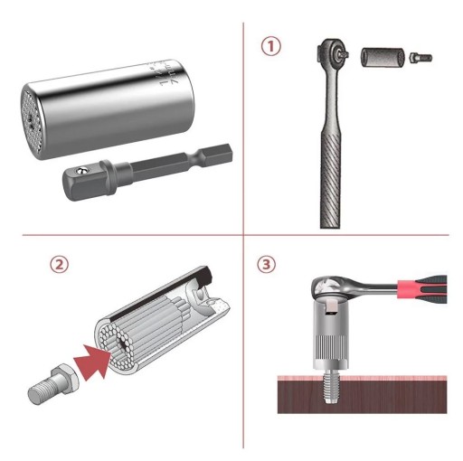 Mechanizm umożliwia samodopasowanie nasadki do kształtu / średnicy wkręcanych/wykręcanych elementów, takich jak: