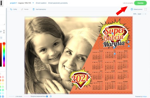 Jeśli jesteś zadowolony z efektu końcowego kliknij "ZAMÓW". Przekierowany zostaniesz do podsumowania zamówienia stworzonego projektu.
