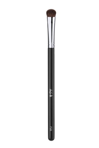 P28 - służący do nakładania prasowanych lub sypkich cieni na całą powiekę. Jego zaokrąglony kształt umożliwia również nałożenie cienia rozświetlającego pod linią brwi oraz na dolnej powiece. Włosie naturalne (kucyk), przyjemne w dotyku, niepodrażniające nawet wrażliwej skóry oczu. Całkowita długość pędzla: 17,5 cm. Długość włosia: 1 cm.