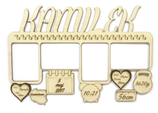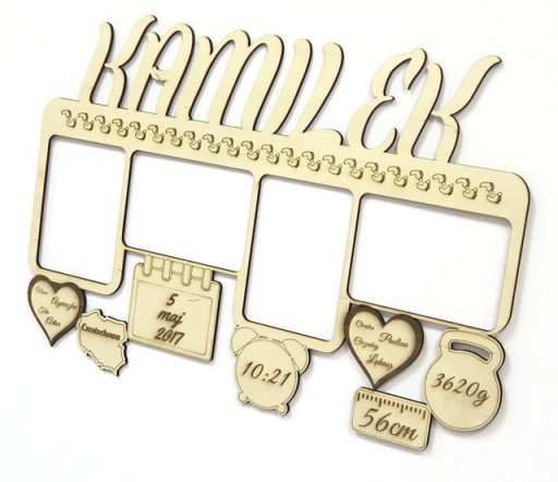 Multiramkę o wymiarach zewnętrznych: szerokość: 47.9cm, wysokość około: 33.0 - 34.0cm - zależnie od podanego imienia.