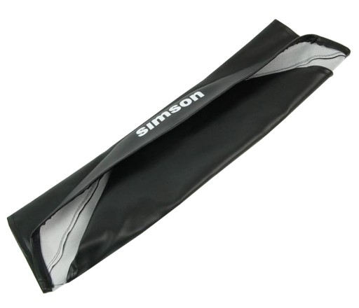 OPIS: POKROWIEC SIEDZENIA PRODUKCJI NIEMIECKIEJ MZA. NIEPIKOWANY, WYKONANY Z NIEPRZEMAKAJĄCEJ SKAJ. POKROWIEC WYŚCIEŁANY OD WEWNĄTRZ CIENKĄ GĄBKĄ. Z TYŁU LOGO NAPIS SIMSON.