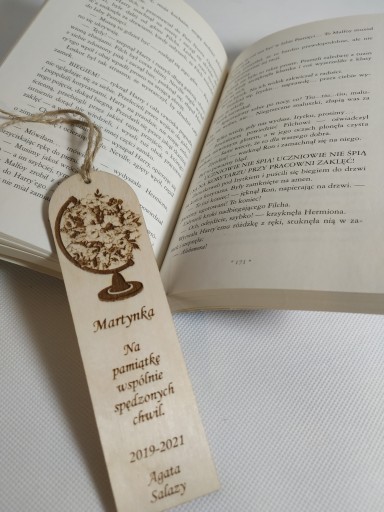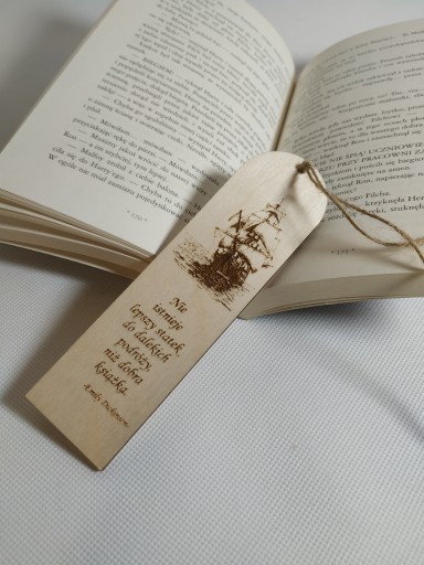 Zakładeczka ze sklejki - szlifowana z obu stron, co bardzo podnosi jej walory estetyczne, lekka. Sznureczek jutowy dodaje oryginalności. Czytelna, wyraźna czcionka - dowolnie można zmieniać - wszystko do uzgodnienia , wystarczy przesłać własny pomysł, tekst. Super jako gadżet reklamowy, pożyteczna w każdym domu, motywująca do czytania!