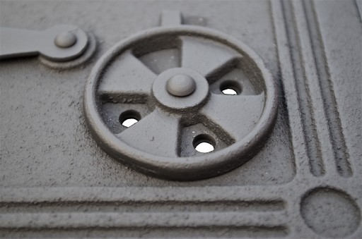 Drzwiczki paleniskowe Z REGULACJĄ DOPŁYWU POWIETRZA , wykonane z żeliwa szarego.