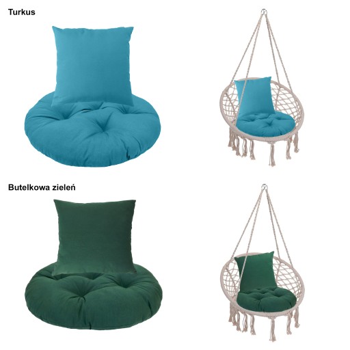 - Projekt poduszki stworzony specjalnie do huśtawek plecionych (o średnicy siedziska 50 - 53cm)