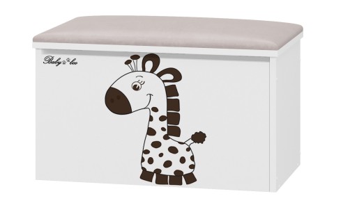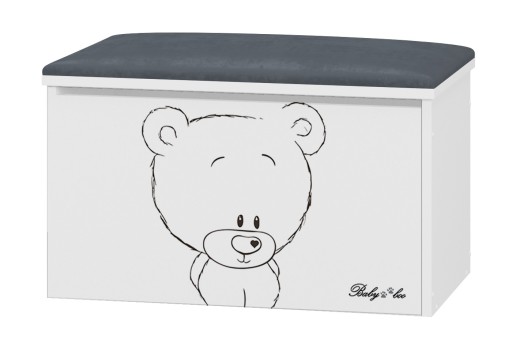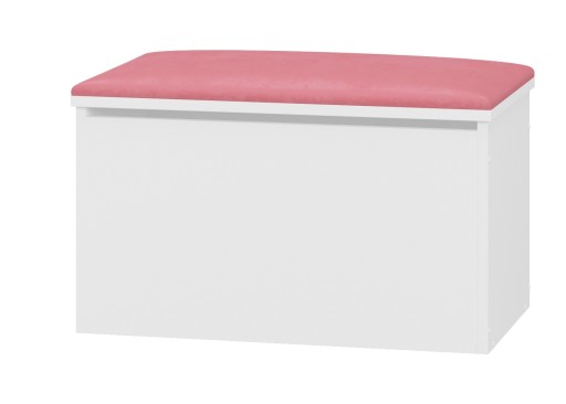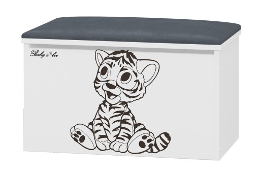 Pojemnik wykonany jest z płyty wiórowej, o grubości 16 mm. Na przodzie pojemnika znajduje się kolorowy nadruk. Góra obita miękka pianką oraz tkanina wyskiej jakości w 5 kolorach do wyboru.