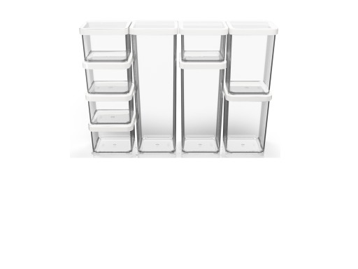 - Różne pojemności pozwalają na pełną organizację kuchennych zasobów od artykułów sypkich po makarony, płatki śniadaniowe, owoce, ciastka czy choćby słodycze.