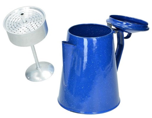 Emaliowany dzbanek turystyczny o pojemności 2 litrów z wyjmowanym zaparzaczem. Wykonany został ze stali. Pozwala na zaparzenie kawy lub herbaty zarówno w warunkach domowych, jak i podczas biwaku lub pieszej wędrówki.