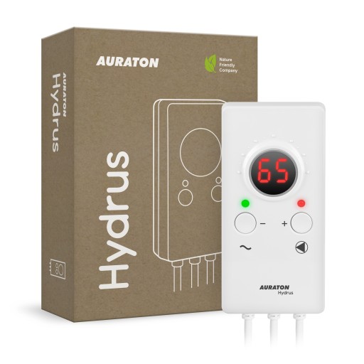 AURATON Hydrus może pracować w trybie automatycznym lub manualnym. Zarówno dla pompy C.O. jak i w przypadku pompy C.W.U użytkownik może ustawić temperaturę w zakresie od 10°C do 90°C, natomiast pomiar temperatury jest możliwy w zakresie od 10°C do 99°C. W zależności o ustawionej temperatury sterownik załącza lub wyłącza pompę oraz zawór. Sterownik jest wyposażony w funkcję AntiStop, która zapobiega procesowi zatarcia wirnika nieużywanej pompy, ponieważ wbudowany procesor co 14 dni samoczynnie uruchamia pompę na 30 sekund. Wyświetlacz LED wskazuje bieżącą temperaturę, a dodatkowo można na nim ustawić temperaturę optymalną – zazwyczaj 40°C.