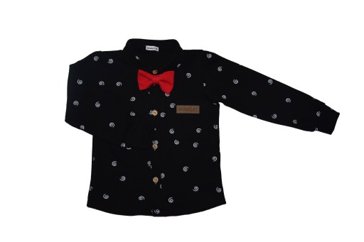 Posiada klasyczny kołnierzyk i rękawy wykończone mankietem.