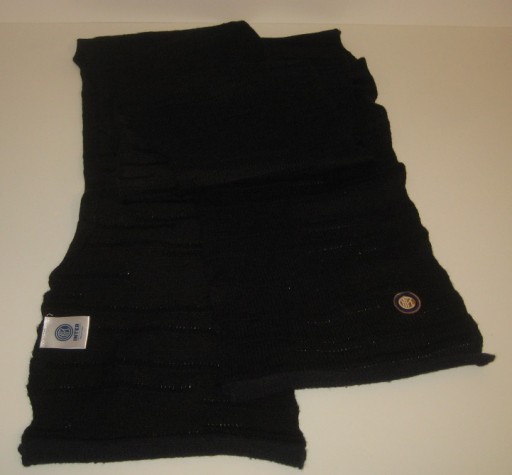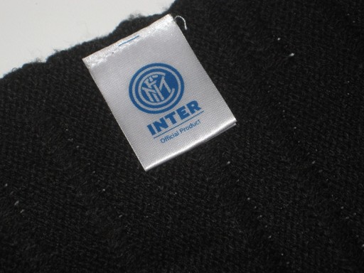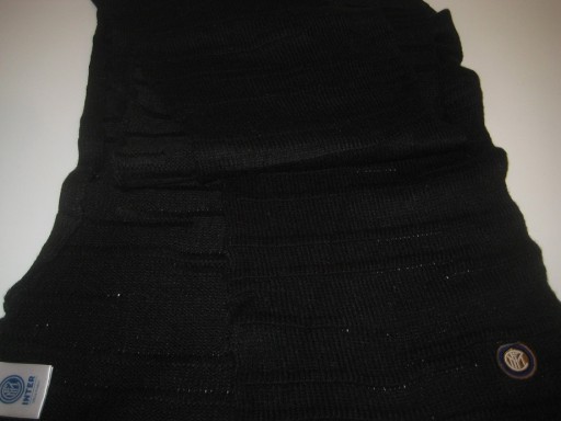 Długi, zimowy szalik - Inter. Produkt oficjalny. Kolor: czarny. Używany. Stan jak na zdjęciach - naderwana naszywka. Z Włoch. Cena za 1 szt.