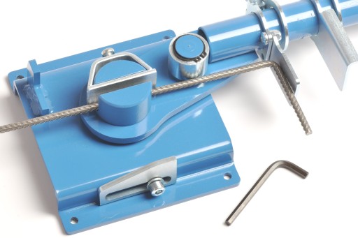 Regulacje ograniczników długości gięcia i kąta gięcia wykonuje się tylko jednym kluczem.