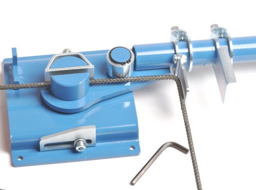 - pręty żebrowane do # 10 mm lub gładkie do fi 10 mm na ostro w kanałku głowicy (rdzeniu) giętarki,